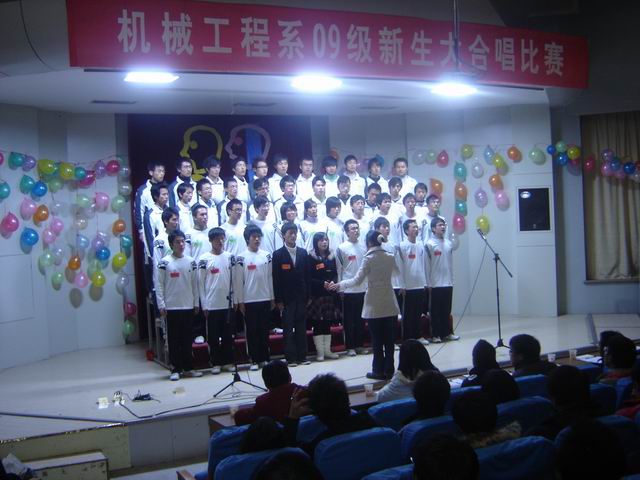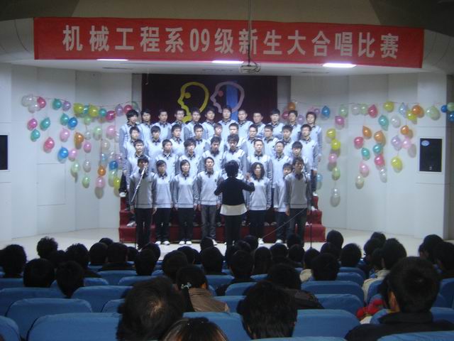 为践行“三做”教育理念,推进新生适应性教育,培养我系大学生集体主义观念,营造良好的校园文化氛围,机械工程系特举办了2009级新生大合唱比赛。12月5日晚7:00,激烈的决赛在学术报告厅隆重上演。机械工程系党总支副书记邓英扣、团总支书记黄炜莅临大赛现场。