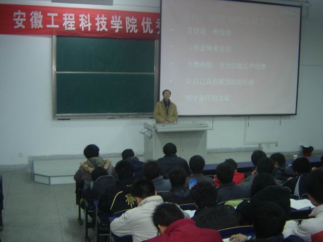 为进一步培养机械工程系分党校第17期全体学员的党员意识和责任意识, 12月29日晚7点学生处处长王河在5教217做了主题为“责任成就事业——学生入党积极分子如何做人、做事、做学问”的专题讲座。本期党课教育培训班班主任张礼波老师及全体学员出席此次讲座。