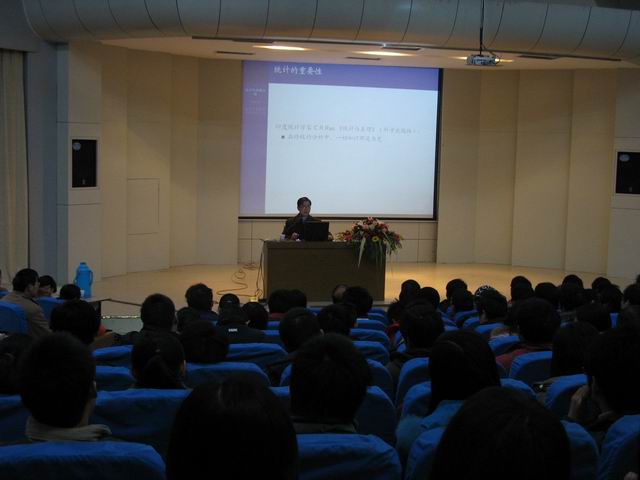 此前,18日下午缪柏其教授和胡太忠教授在学术报告厅为我系师生分别作了题为《统计与金融》和《Chebyshev不等式》的报告,两位教授分别结合自身在统计学方面的研究成果,通过统计学在实际中的应用,介绍了统计理论的相关知识。互动环节中,针对同学们对统计学的浓厚兴趣,两位教授做了细致的回答,现场气氛热烈。
