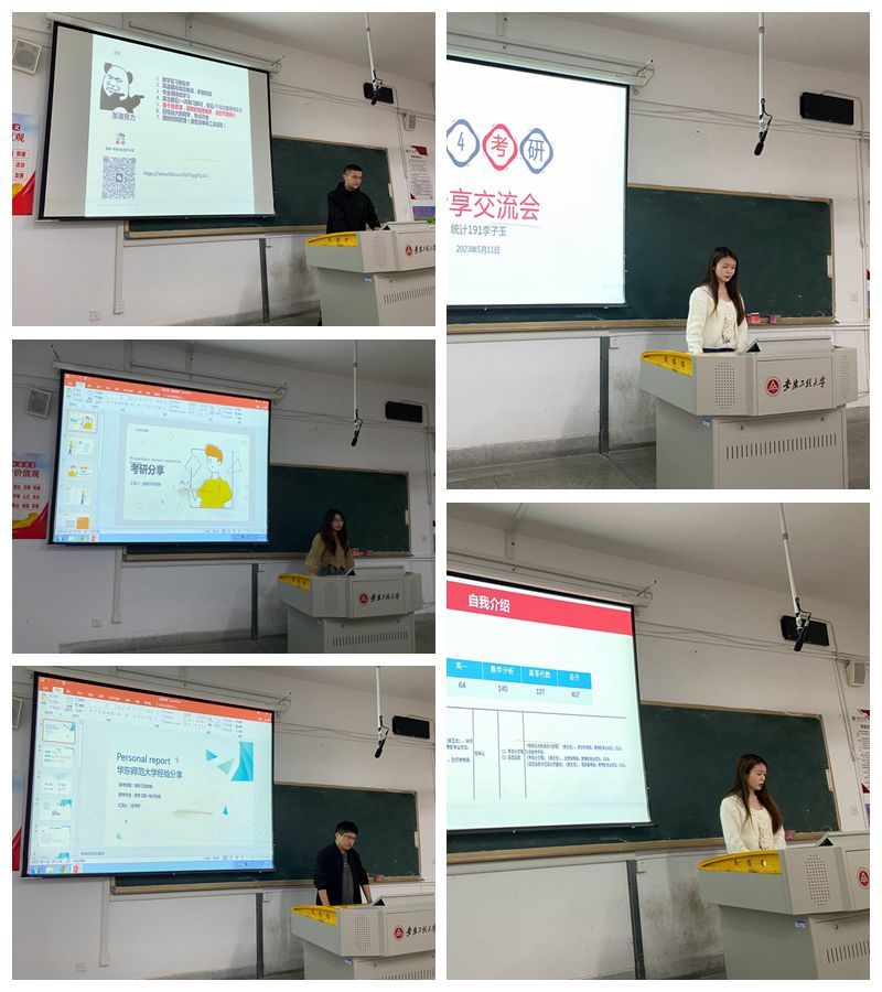 报告会上,来自计算机193的陈俊杰分享了他的考研经验,他强调了时间管理的重要性,推荐了有关整理复习的高效工具,提出“善于利用资源”的观点。来自软件192的沈祥祥分享他的备考总体规划,对考研的择校、错题本使用、学习老师和各科学习方法提出一些建议,尤其强调了“项目”的重要性。来自统计191的李子玉,分享了她的考研理由,建议同学多多考证,参加比赛,推荐了很多老师和她使用的高效工具。来自金融191的李陈陈,给大家分享了备考时的各科宝藏老师,对于学习方面也提出了一些实用的建议。最后,老师与同学们就有关考研问题进行了交流。