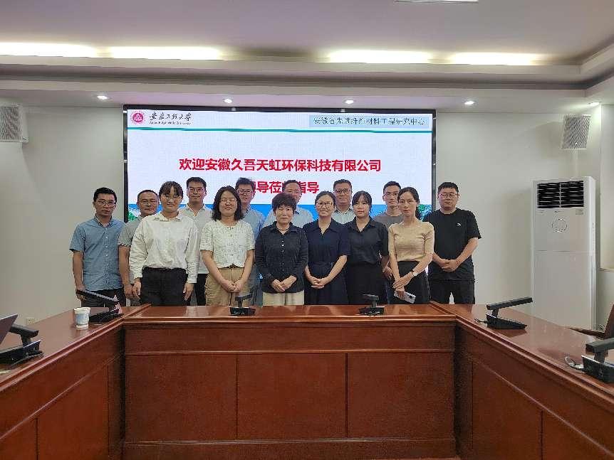 在座谈交流会上,薛正莲对李申董事长等一行的到访表示欢迎,同时介绍了参会人员及生物与食品工程学院和纺织服装学院基本情况。会上,生物与食品工程学院“生物质资源化高效利用科研创新团队”负责人李艳宾博士汇报了近些年团队围绕畜禽有机废水的深度净化处理方面开展的系列工作,重点介绍了在废水高效脱氮微生物菌种及工艺方面所取得的进展,并就下一步中试放大试验中,微生物菌种膜固定化的材料选择与制备与纺织学院团队进行探讨。纺织服装学院“先进纤维材料团队”成员武丁胜博士介绍了“安徽省先进纤维材料工程研究中心”和“纳米结构纺织材料及其表面功能化”省级团队的主要研究方向、研究成果和意向的合作内容,详细介绍了团队建有的中空多孔纤维微滤膜和静电纺丝纳米纤维超滤膜中试生产线和废水处理中试工艺线基本情况。