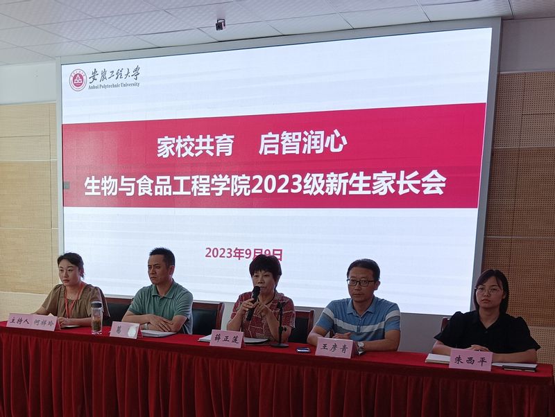为帮助新生家长了解学校认识学院,促进家校合作,9月9日,生物与食品工程学院在虚拟仿真中心召开2023级新生家长会。院长薛正莲、党委副书记王彦青、副院长葛飞、教师代表朱西平及100多名新生家长参加会议,会议由新生辅导员何祥玲老师主持。