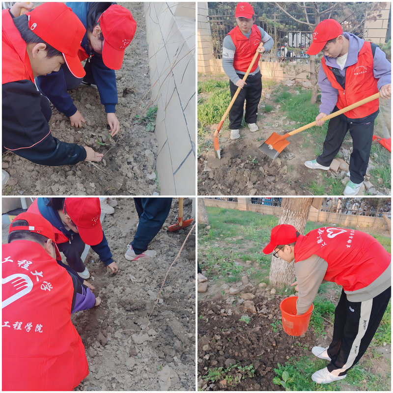 今年3月12日是全国第46个植树节,为更好践行“绿水青山就是金山银山”的绿色发展理念,引领广大青年团员增强生态文明理念,生物与食品工程学院志愿者在校劳动教育实践基地开展了以绿化校园为主要内容的环境保护志愿服务。
