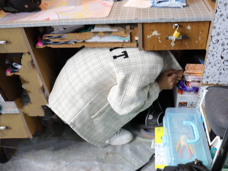 14:30,当听到灾情警报、撤离信号后,各楼层学生在安全指挥员的统一调度下,双手抱头蹲在桌子下避震,捂着鼻、弯着腰按指定逃生路线,有序撤离到指定安全地点,各班级立即清点人数并报告给现场指挥,确保学生安全。