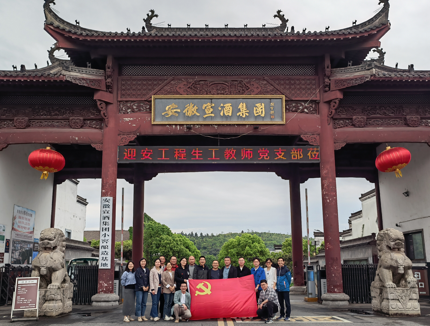 为切实学习贯彻落实党的二十大精神,探索新时代“党建+”融合模式,深化校企融合双向赋能,积极发挥党建引领发展作用,4月19日上午,生物与食品工程学院生物工程系教师党支部书记李艳宾组织支部党员赴安徽宣酒集团股份有限公司开展校企党建共建活动。安徽宣酒集团股份有限公司副总经理、总酿酒师高传强,人力资源总监、后勤党支部书记姚中春,副总酿酒师易俊,酿造党支部副书记程俊等参加活动。
