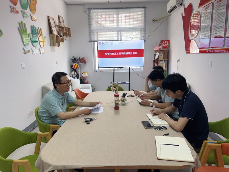 7月3日下午,生物与食品工程学院在男14栋“生师有约”学生和谐社区工作站召开辅导员例会,部署和安排暑期学生工作。学院党委副书记王彦青和全体辅导员参加会议。