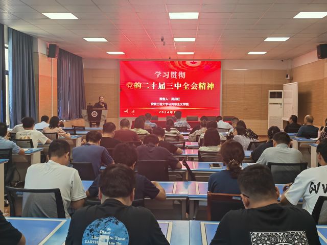 本次宣讲报告会是学院党委按照学校党委部署要求,落实学习贯彻党的二十届三中全会精神的一项重要举措。学院党委将持续推进党的二十届三中全会精神学习,进一步推动党的二十届三中全会精神入脑入心,把贯彻落实全会精神同学院中心工作结合起来,通过进一步深化改革为校院各项事业高质量发展贡献力量。