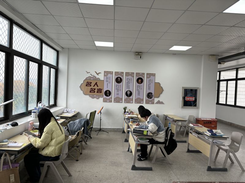 开拓复习新空间。考虑到2025届考研备考生总人数的增加,学院在保证原有的两间考研复习自习室的基础上,临时征用了学院教职工活动中心作为考研复试自习室,同时,利用学院楼道空间大的优势,努力争取资金和硬件设施支持,将学院南楼四楼与五楼的空旷处改造成新的考研复试自习室,极大程度上保障了学生考研复习的空间条件。