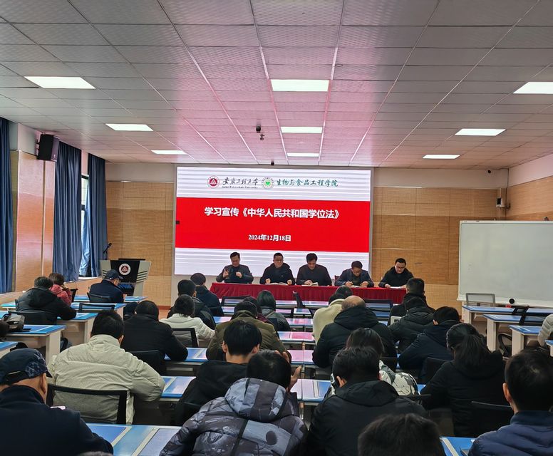 为进一步贯彻落实《中华人民共和国学位法》,加强对学位制度的理解与认知,生物与食品工程学院于2024年12月18日召开全体教职工大会,组织学习《中华人民共和国学位法》。会议由院长葛飞主持。